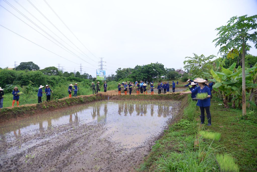 ทั้งนี้ศูนย์ศึกษาและพัฒนาตามหลักปรัชญาเศรษฐกิจพอเพียง กฟผ.แม่เมาะ เป็นศูนย์ถ่ายทอดองค์ความรู้ตามแนวทางหลักกสิกรรมธรรมชาติ โคก หนอง นา โมเดล วิถีใหม่ รวมถึงความรู้ชีววิถีสู่การพัฒนาที่ยั่งยืนโดยกิจกกรมเอามื้อสามัคคีพัฒนาศูนย์ศึกษาฯ (ปลูกเดือนแม่ เกี่ยวเดือนพ่อ) ได้จัดขึ้นมาต่อเนื่องเป็นปีที่ 9 ซึ่งครั้งนี้ได้ปลูกข้าวพันธุ์ไรซ์เบอร์รี่ด้วยการโยนแบบประณีตในแปลงนาสาธิตของศูนย์ศึกษา และพัฒนาตามหลักปรัชญาเศรษฐกิจพอเพียง กฟผ.แม่เมาะ เนื่องในโอกาส วันเฉลิมพระชนมพรรษา 12 สิงหาคม 2568 ของสมเด็จพระนางเจ้าสิริกิติ์ พระบรมราชินีนาถ พระบรมราชชนนีพันปีหลวง เพื่อเทิดพระเกียรติและสำนึกในพระมหากรุณาธิคุณ ที่ทรงมีต่อพสกนิกรชาวไทย ส่งเสริมให้ผู้เข้าร่วมกิจกรรมตระหนักถึงการดำเนินชีวิตแบบพอเพียงตามศาสตร์พระราชา ตลอดจนเสริมสร้างความรู้การทำนาแบบดั้งเดิมผสานการนานวัตกรรมใหม่จากแหล่งธรรมชาติและ ภูมิปัญญาพื้นบ้าน เช่น การคัดเลือกเมล็ดพันธุ์ การนำจุลินทรีย์ชนิดต่างๆ มาใช้ให้เกิดประโยชน์เพื่อผลิตพันธุ์ข้าวอินทรีย์ ที่สมบูรณ์ ปลอดภัยได้เมล็ดพันธุ์ที่ดี เพื่อให้แปลงนาสาธิตนี้เป็นแหล่งศึกษาเรียนรู้ของประชาชนทั่วไป และกำหนดเก็บเกี่ยวผลผลิตในเดือนธันวาคม 2568 โดยผลผลิตที่ได้จะนาส่งต่อให้แก่หน่วยงานและชุมชนในพื้นที่เพื่อใช้ประโยชน์ต่อไป